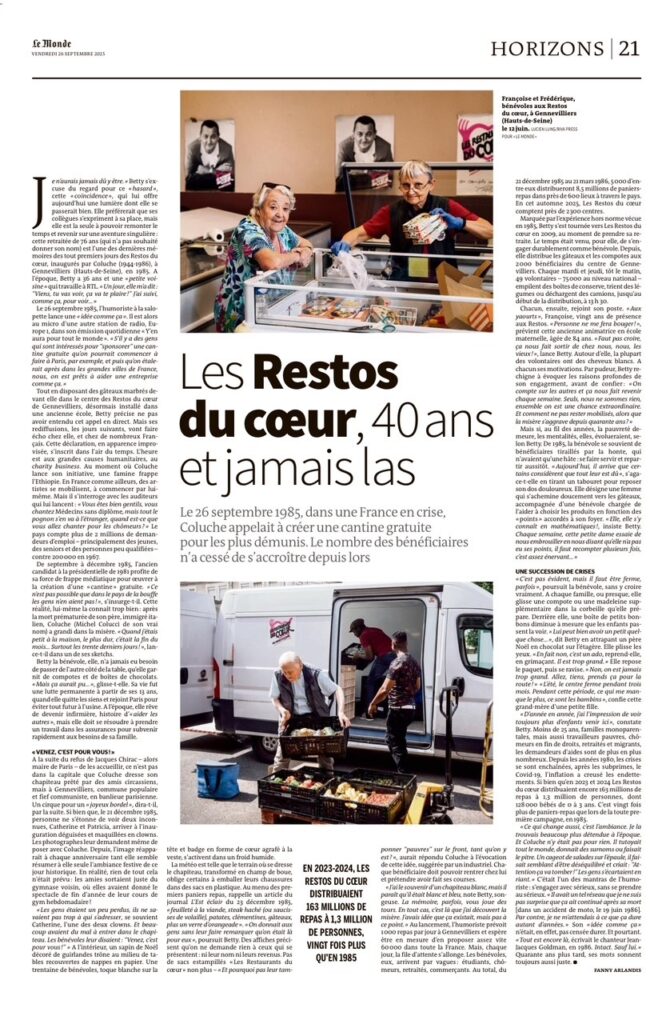 Cet article est paru dans le journal le monde du 26 Septembre 2025, pour célébrer les 40 ans de la création des restos du cœur par Coluche