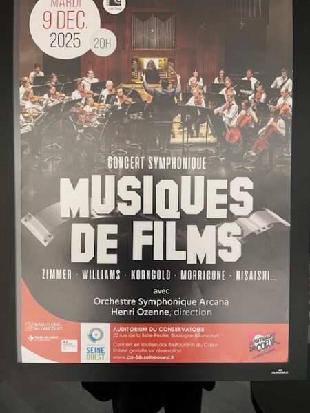 Le 9/12 Concert Symphonique « MUSIQUES DE FILMS » en soutien aux Restos du Cœur de l’Orchestre ARCANA du Conservatoire de Boulogne